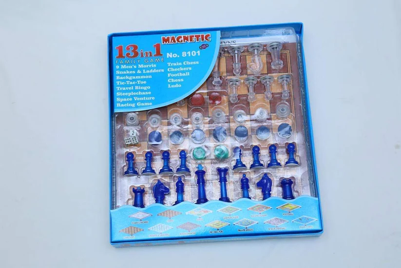 Enjoy endless entertainment with 13 classic games in one magnetic set! Perfect for family game nights, travel, and all ages.