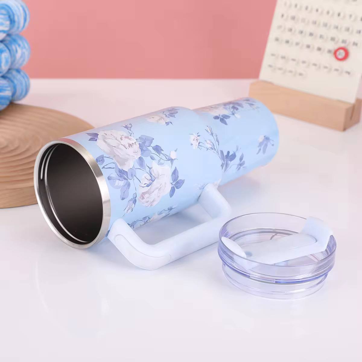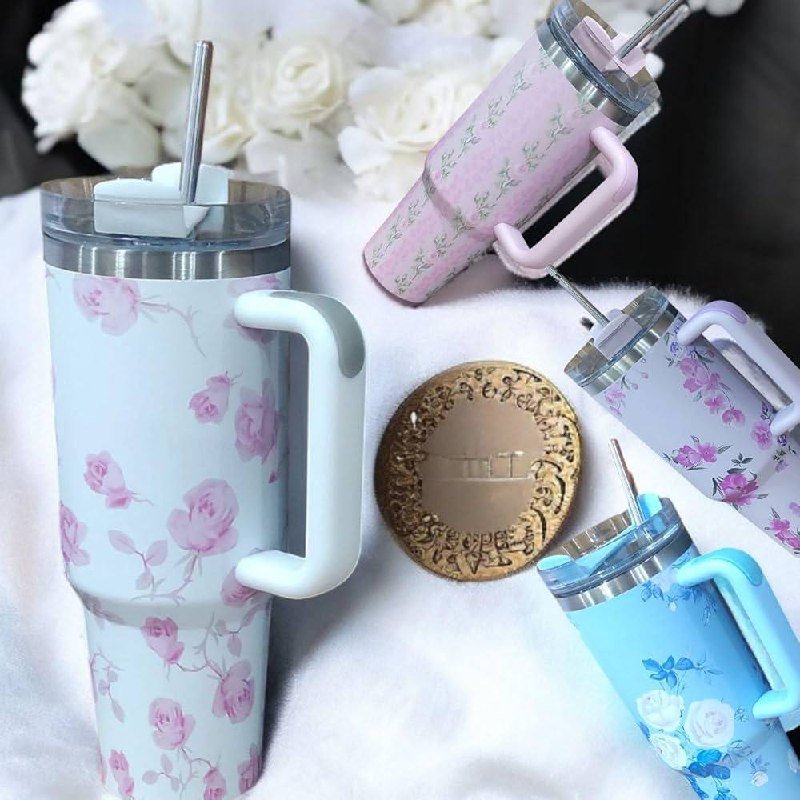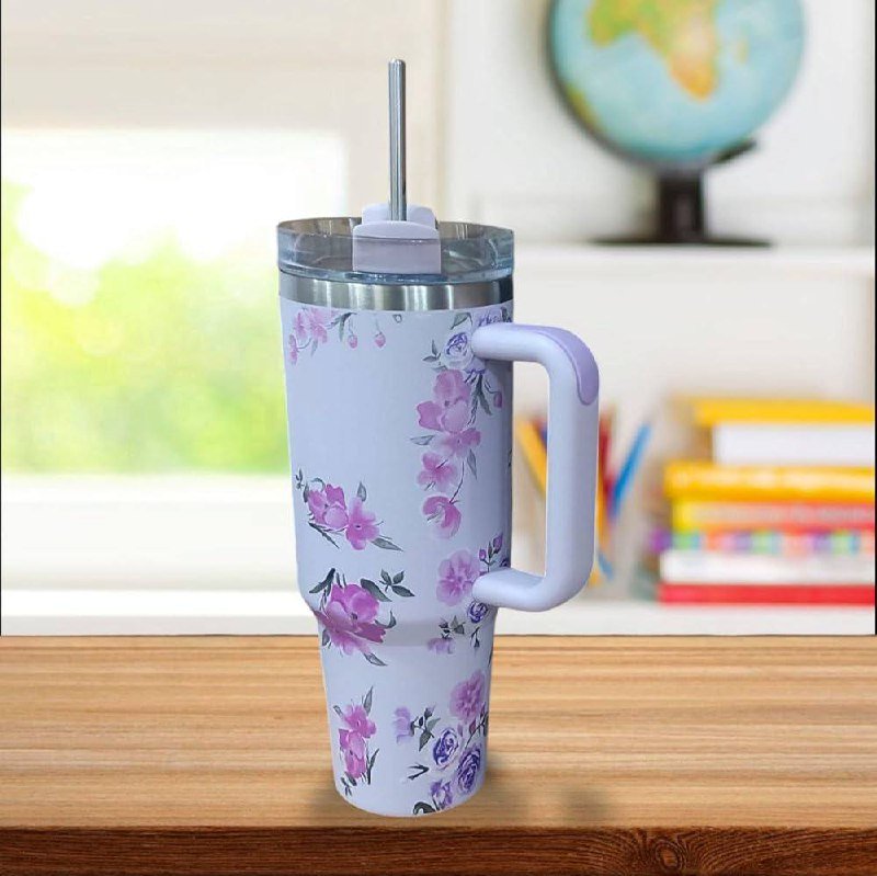 Enjoy your drinks in style with this 40oz floral stainless steel tumbler. Featuring double-wall insulation, a leakproof lid, handle, and straw—perfect for hot or cold beverages on the go.