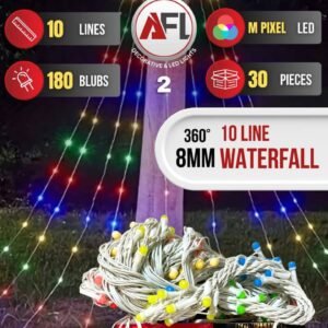 Create a magical atmosphere with this Multi-Colour Waterfall Curtain Light featuring 10 vibrant strings and an elegant 8 mm waterfall design. Perfect for both indoor and outdoor decoration, it adds a stunning glow to your space for Diwali, Christmas, parties, weddings, or daily home décor. Easy to hang and energy-efficient, this curtain light brings beauty and brightness to any setting.