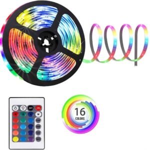 Enhance your space with vibrant lighting using the Protium 60 LED RGB Light Strip Kit. This easy-to-install strip comes with a remote, controller, and power supply, allowing you to switch colors, adjust brightness, and set light modes effortlessly. Perfect for decorating your room, TV setup, desk, or festive occasions.