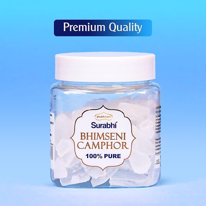 Shubhkart Surabhi Pure Bhimseni Camphor offers a natural, purifying fragrance ideal for pooja, hawan, and as an air freshener. Made from 100% organic camphor, it’s perfect for use in diffusers and leaves no harmful residue.
